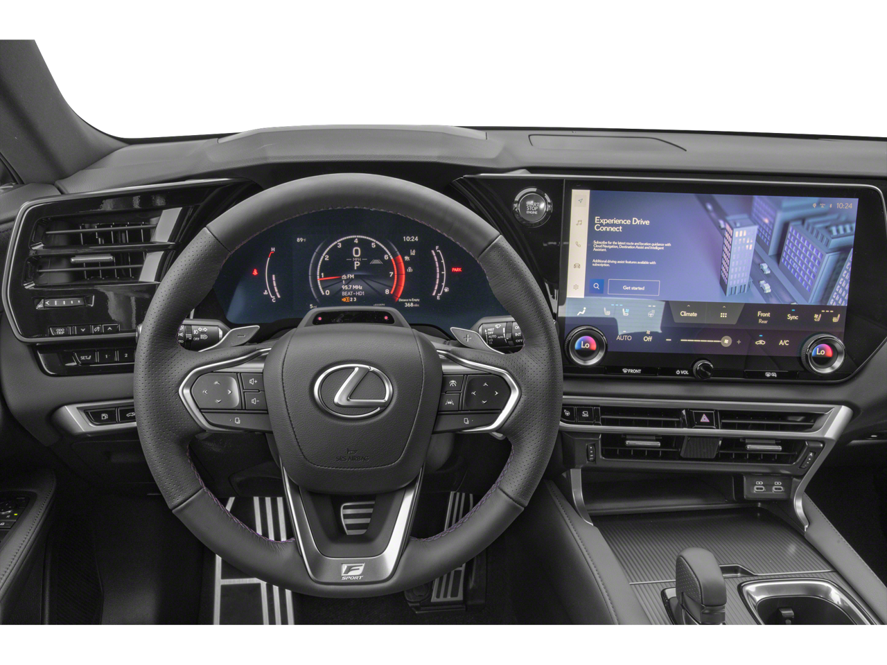 Inside, the luxurious cabin showcases Lexus' commitment to craftsmanship and attention to detail. The F SPORT NuLuxe seat trim, heated and ventilated front seats, and power-adjustable driver and passenger seats create an exceptional level of comfort and support. The 14-inch HD touchscreen display with Lexus Interface and wireless connectivity keeps you connected and in control.
